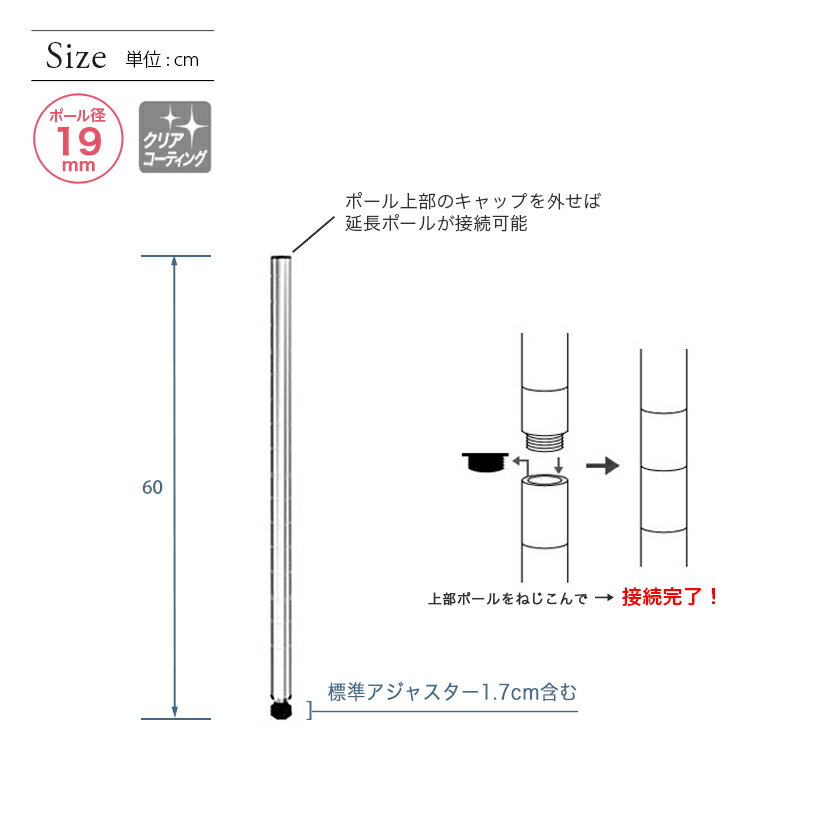 ラックの高さを継ぎ足す場合は、継ぎ足し専用(延長)ポールをお買い上げください。