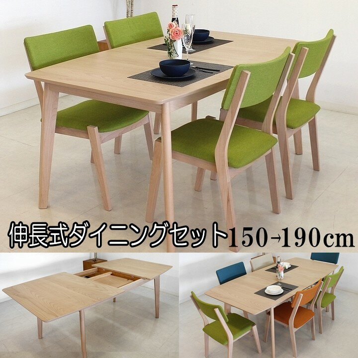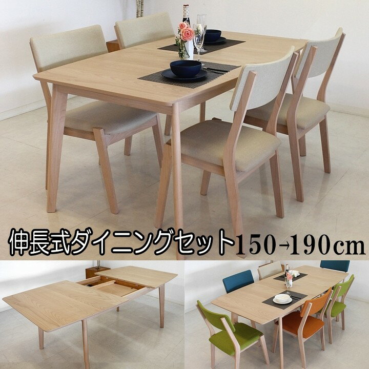 伸長式ダイニング5点セット ダイニングテーブルセット 北欧 ナチュラル シンプルモダン ビーチ 150cm−190cm幅 おしゃれ カフェ風 エクステンションテーブル