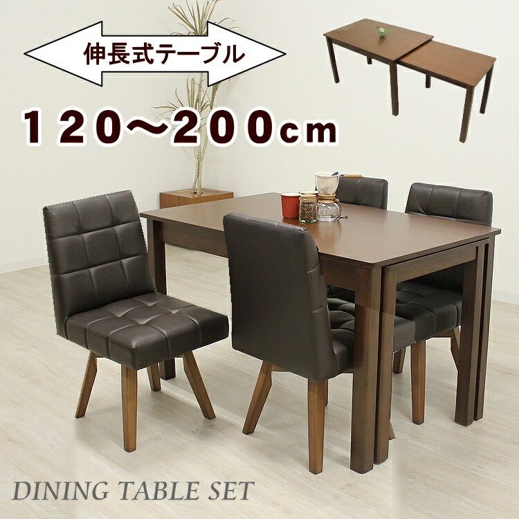 伸長式ダイニング5点セット ダイニングテーブルセット シンプルモダン 120〜200cm ウォールナット突板 チェア完成品 おしゃれ カフェ風 エクステンションテーブル