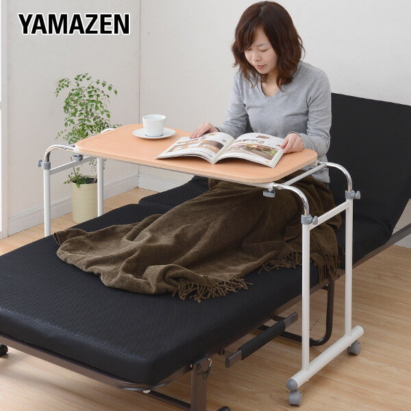 伸縮式ベッドテーブル(天板幅80 奥行40) BTT-8040(NA) ナチュラル&アイボリー ベットテーブル ベッドサイドテーブル ナイトテーブル【送料無料】 山善/YAMAZEN/ヤマゼン 1119P