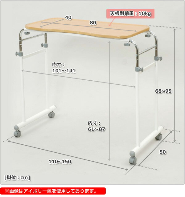 山善(YAMAZEN) 伸縮式ベッドテーブル(天板幅80 奥行40) BTT-8040(NA) ナチュラル&アイボリー 本体サイズ 幅110-150×奥行50×高さ68-95cm 重量8.5kg 材質 天板:合成樹脂化粧繊維板(塩化ビニル樹脂)フレーム:スチール(粉体塗装、クロムめっき) 仕様 ●原産国:台湾●組立品です●組立時間:約30-40分 商品説明 ●ベッドの上で食事、読書が可能なテーブル●幅・高さがベッドに合わせて伸縮可能●【外寸】幅伸縮110〜150cm●【内寸】幅伸縮101〜141cm●【外寸】高さ伸縮68〜95cm●【内寸】高さ伸縮61〜87cm●天板サイズ : 幅80 奥行40cm●天板耐荷重:10kg●キャスター4個(ストッパーなし) 商品補足説明 YAMAZEN ヤマゼン 山善 通販 ベッドテーブル サイドテーブル ナイトテーブル ベッドサイドテーブル 伸縮テーブル パソコンデスク パソコンラック パソコンテーブル PCデスク PCラック ノートパソコン用 ノートPC用 テーブル 机 つくえ デスク ナチュラル&ブラウンリクライニングベッドに最適♪