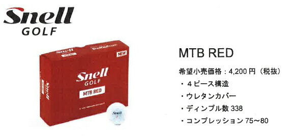 2018 スネル ゴルフ SNELL GOLF MTB RED ゴルフボール US仕様 1ダース(12球入り)【メール便不可】【あす楽対応】