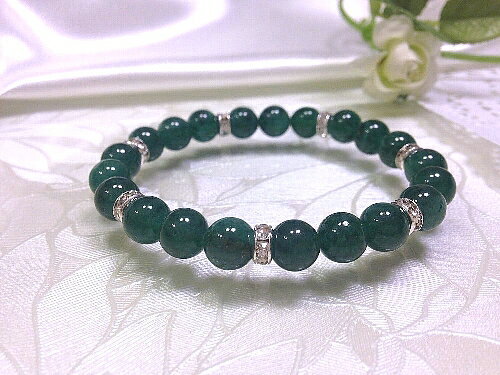 通常よく見かけるグリーンアベンチュリンは薄いグリーンの「グリーンクォーツァイト」(キラキラとした輝きが見られない石)ですが、こちらはアベンチュリン効果が見られる「アベンチュリンクォーツ」です。